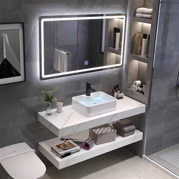 Tủ Lavabo Bằng Đá 2 Tầng Vân Mây Trắng