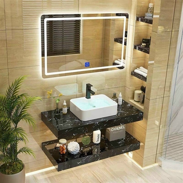 Tủ Lavabo Bằng Đá 2 Tầng Vân Mây đen